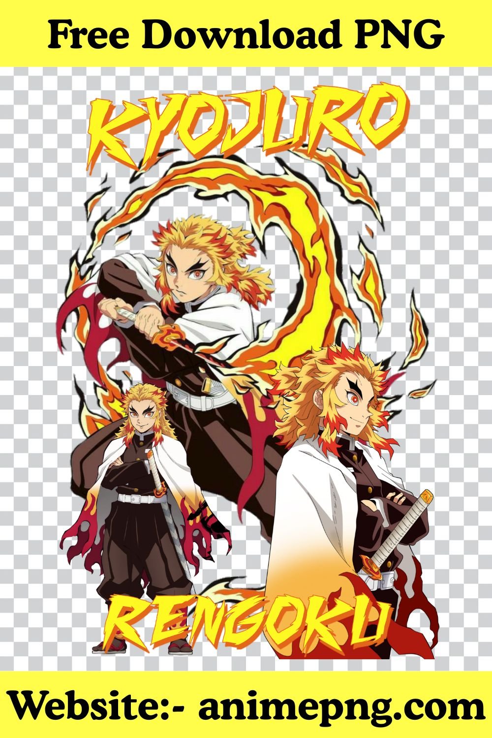 Bring the amazing power and burning spirit of Kyojuro Rengoku to your creative projects. Save your time and make your designs stand out with this premium-quality image!